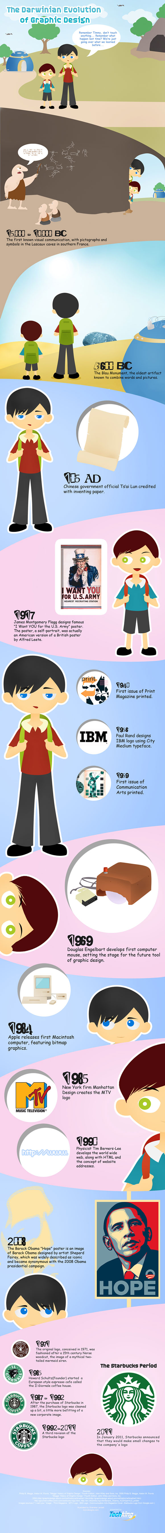 The evolution of graphic design is a very is very interesting. It is hard to believe the way we do things now that thousands of years ago “graphic designers” were chipping pictographs into cave walls. While some designers would probably be much better at that than they are with Photoshop it is really fun to look back and also think about what is in store for the future of graphic design. Without further delay, here is The Darwinian Evolution of Graphic Design.