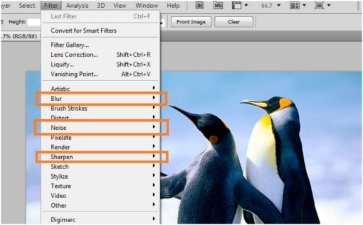 Note: of course you have to open a valid picture or document to use a particular filter on it. Some filters will not be available when working on a file which is on a grayscale color mode or indexed color mode. Some filters will also be available for use when the image is on a different bit channel.